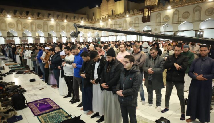 اصطف آلاف المصلين في أروقة وصحن الجامع الأزهر لأداء صلاتي العشاء والتراويح، من مختلف محافظات الجمهورية والطلاب الوافدين من مختلف دول العالم، في الليلة الأولى من ليالي شهر رمضان المبارك لعام 1446 هـ، رُكعًا سُجدًا يبتغون فضلًا من الله ورضوانًا، يقيمون الصلاة ويلهجون إليه بالدعوات، يطلبون الدرجات العلى ومغفرة الذنوب وتقبّل الأعمال الصالحة، وأن يعينهم على قيام الشهر الفضيل وصيامه والإكثار من الطاعات والتزوّد من الخيرات.