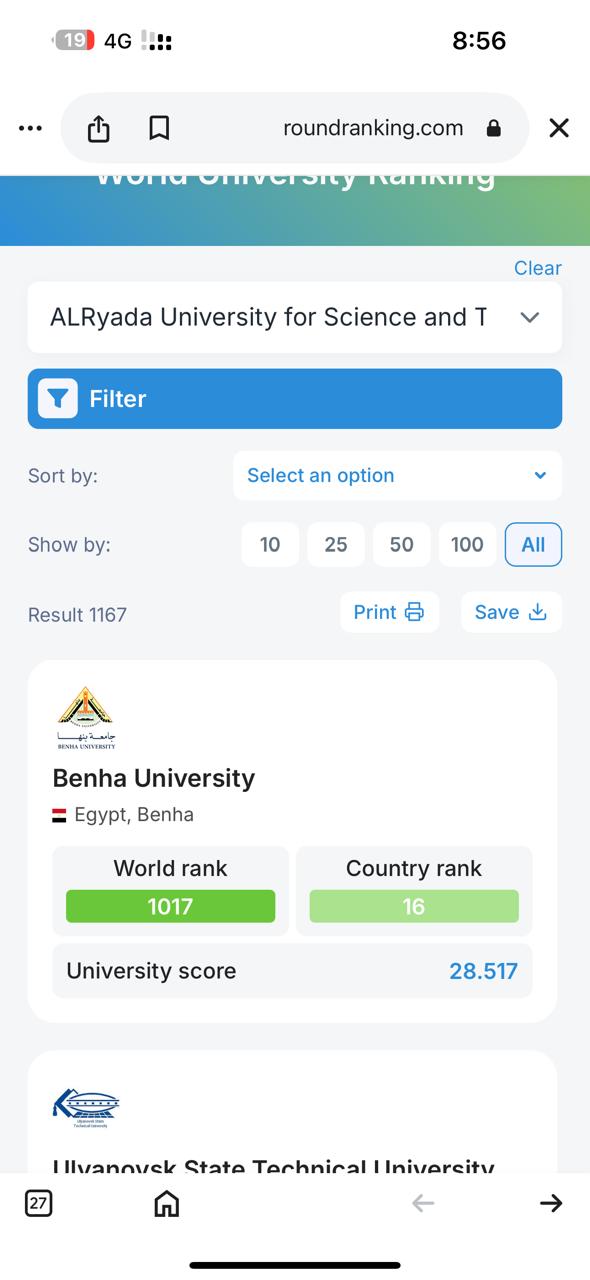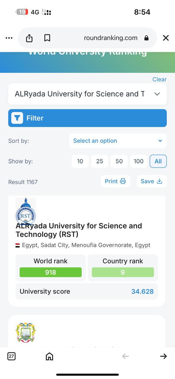 للاطلاع علي نتيجة التصنيف كاملة من خلال الرابط التالي : https://roundranking.com/universities/alryada-university-for-science-and-technology-rst.html?year=2024&subj=1&dimens=T&1743405013213&1743405013213