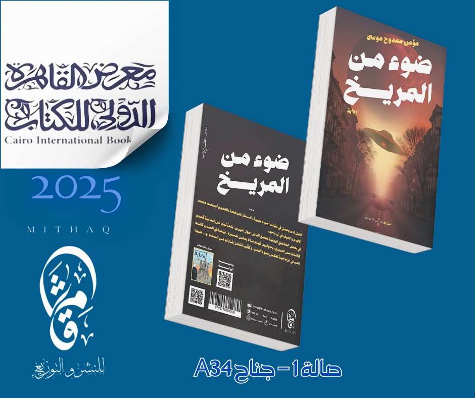 رواية “ضوء من المريخ” تعد رحلة إنسانية فلسفية بين الخيال والواقع، ويشارك بها الكاتب فى معرض القاهرة الدولي للكتاب بدورته 56، والمقام فى الفترة من 23 يناير الجاري حتى 5 فبراير المقبل، تحت رعاية الرئيس عبد الفتاح السيسي، ومتوفر بصالة 1 جناح A34، لدى دار ميثاق للنشر والتوزيع.