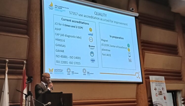 احتفل مستشفى سرطان الأطفال مصر 57357، باليوم العالمي لسلامة المرضى، للعام السابع على التوالي، وذلك في قاعة مؤتمرات المستشفى، بالتعاون مع منظمة الصحة العالمية، رافعة شعار “رعاية آمنة لكل مولود وكل طفل”، وهو شعار المنظمة لهذا العام 2025، وذلك بهدف تعزيز الوعي بأهمية سلامة المرضى وتثقيف جميع الأطراف بالمنظومة، في احتفالية شهدت حضورا كبيرا من العاملين، وأسر المرضى، والطلبة، حيث استمعوا لجوانب متعددة لسلامة المرضى.