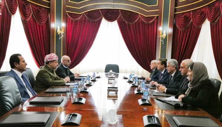 استقبل الزعيم الكردي مسعود بارزاني، اليوم الأربعاء، في منتجع صلاح الدين، قرب أربيل عاصمة كردستان العراق، وفداً من قيادة المجلس الوطني الكردي في سوريا (ENKS).