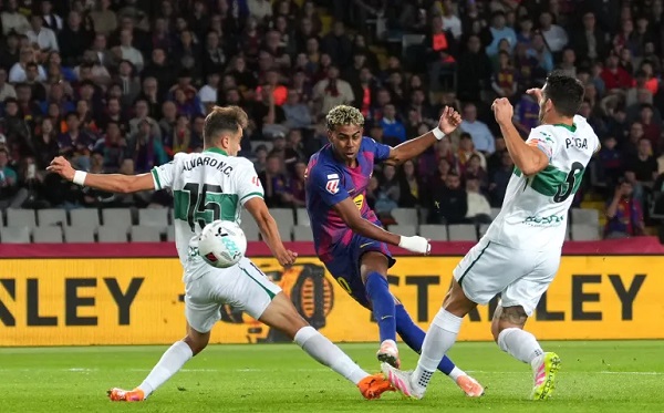 ولدى برشلونة ثاني أفضل سجل خارج أرضه في الدوري الإسباني هذا الموسم، حيث حصد 22 نقطة من 11 مباراة، محققاً سبعة انتصارات في هذه العملية.