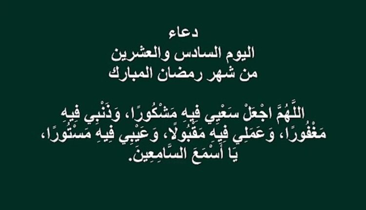 دعاء اليوم السادس والعشرين من رمضان