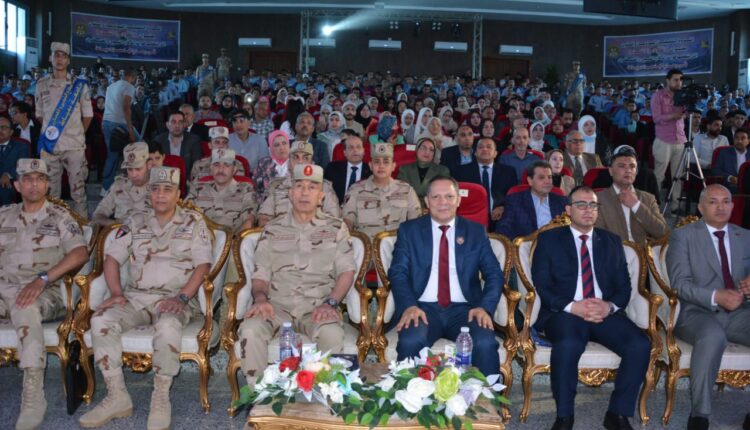 رئيس جامعة دمياط وقائد قوات الدفاع الشعبي والعسكري يشهدا الندوة التثقيفيه بجامعة دمياط