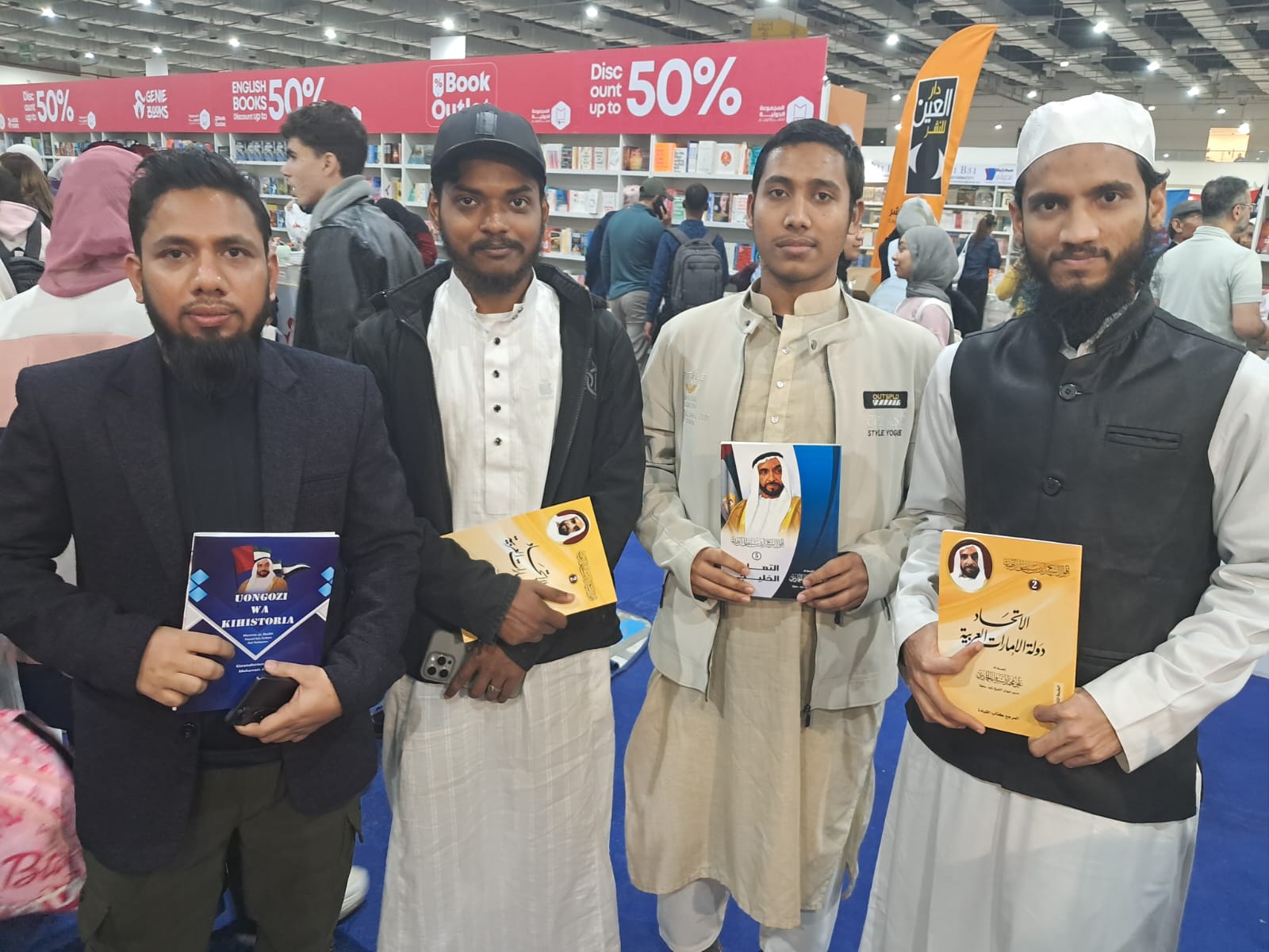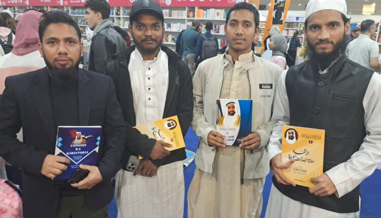 طلاب وباحثون من بنجلاديش بالأزهر يتفقدون جناح مركز العرب في معرض الكتاب ويتسلمون إصدارات الشرفاء الحمادي