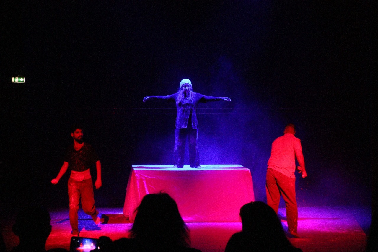 ويقدم عرض «أجراس الدم» من خلال المزج بين الصورة واللغة الكلامية والجسد فكرة الموت بطريقة عبثية دائرية لا تزول هذه الفكرة التي ترافقنا دائمًا.. وهي محددة في العرض المسرحي ببعد زمني يمتد من العصر الإلزابيثي إلى يومنا هذا.