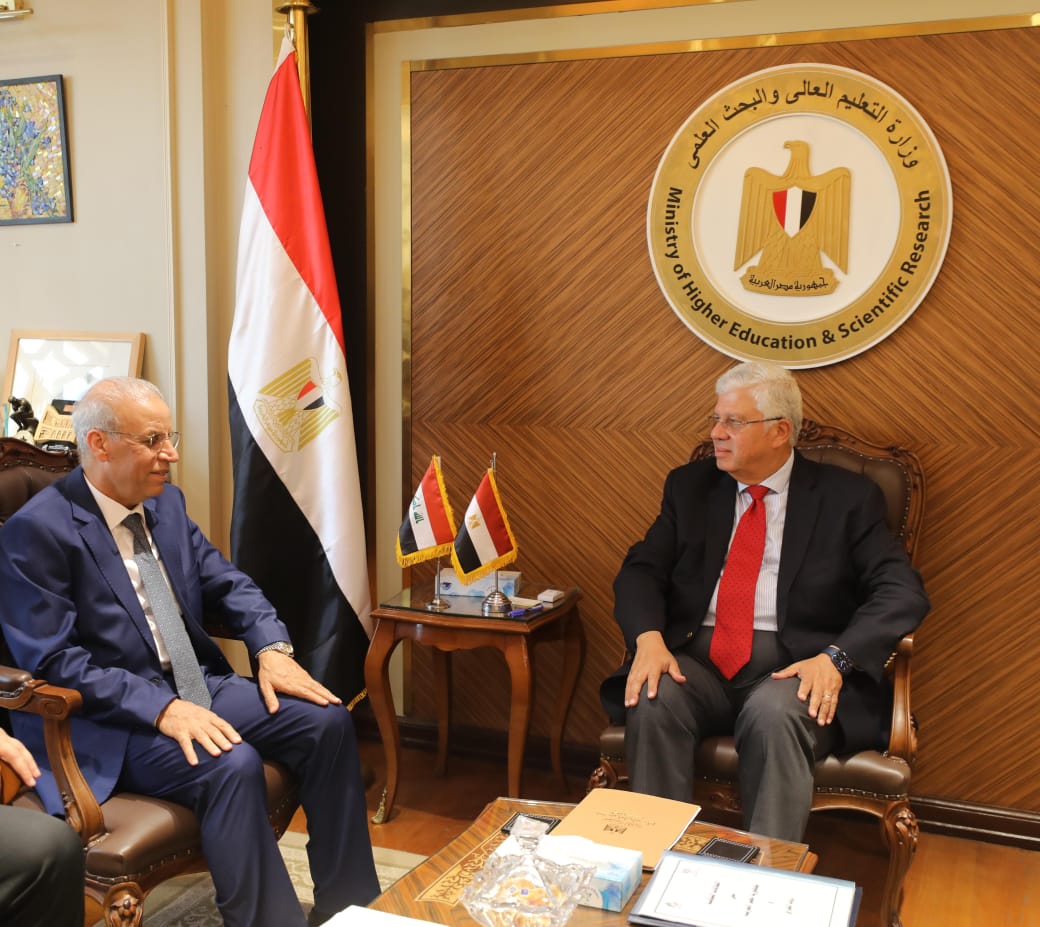 التقى الدكتور أيمن عاشور وزير التعليم العالي والبحث العلمي، الدكتور قحطان خلف، السفير العراقي الجديد في مصر؛ لبحث أوجه التعاون المشترك بين البلدين في المجالات التعليمية والبحثية، بحضور الدكتور شريف صالح القائم بعمل رئيس قطاع الشئون الثقافية والبعثات، والدكتور ثامر البرقي مسئول القسم الثقافي بالسفارة العراقية، وذلك بمقر الوزارة بالعاصمة الإدارية الجديدة.